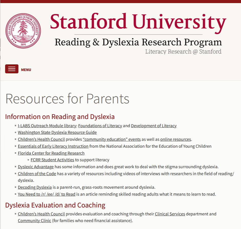 A variety of resources including videos of interviews with researchers in the field of reading/dyslexia.  SEE MORE