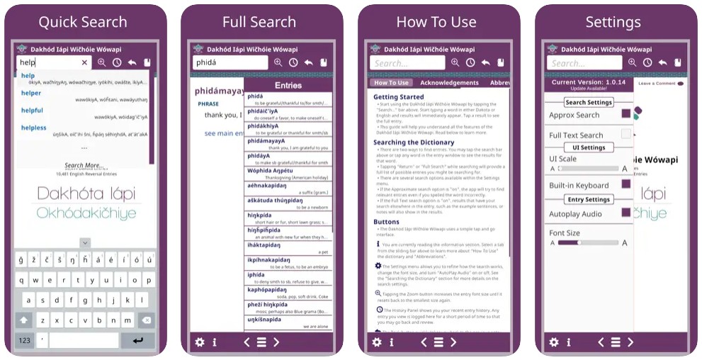 Dakhód Iápi Wičhóie Wówapi is the best way to look up Dakota words, hear pronunciation while on the go. It’s the ultimate electronic Dakota learning and reference tool.