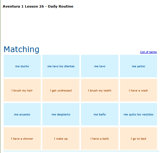 Daily Routines - Match the English word to the Spanish word. SEE MORE