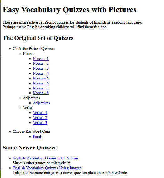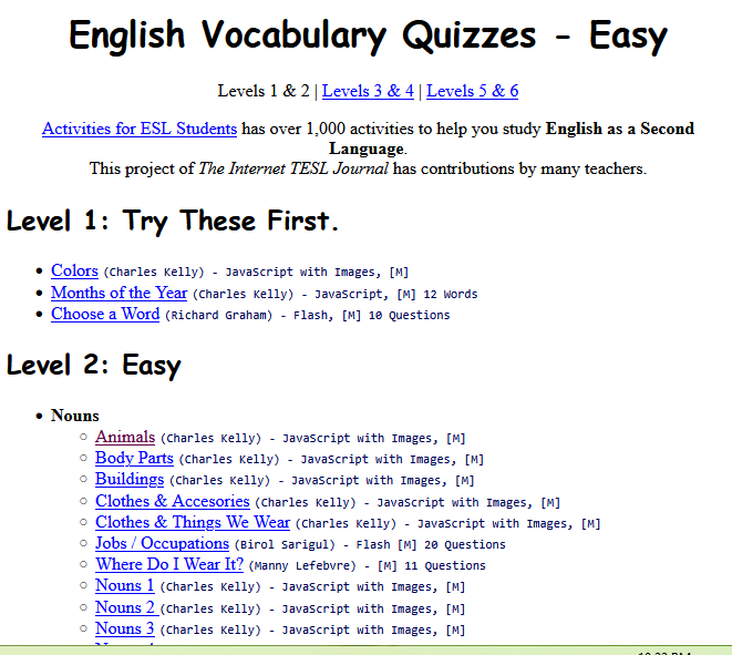 16. English Vocabulary Quizzes - Easy.