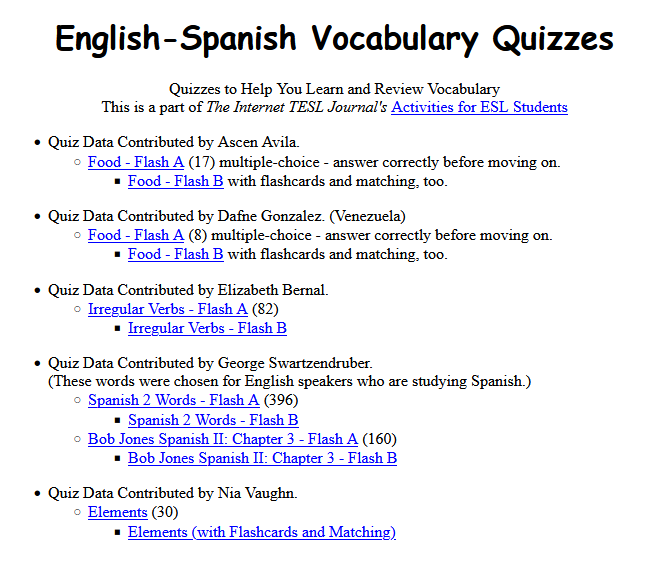17. English-Spanish Vocabulary Quizzes.