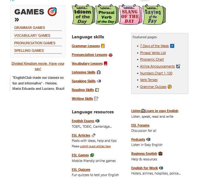 Welcome to the Learn English section of EnglishClub. Here you'll find the language skills you need to learn or improve your English.  SEE MORE