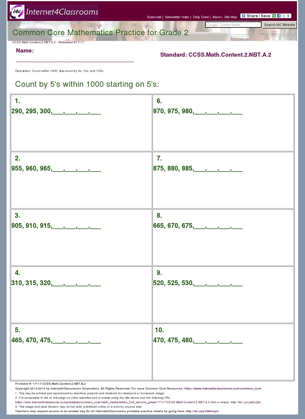 - It is also acceptable to link to this page on other websites and in emails using the title above and the following URL: http://internet4classrooms.com/printables/common_core/math_mathematics_2nd_second_grade/description_download_17117-CCSS.Math.Content.2.NBT.A.2.htm or simply: http://i4c.xyz/yctsm8cw.