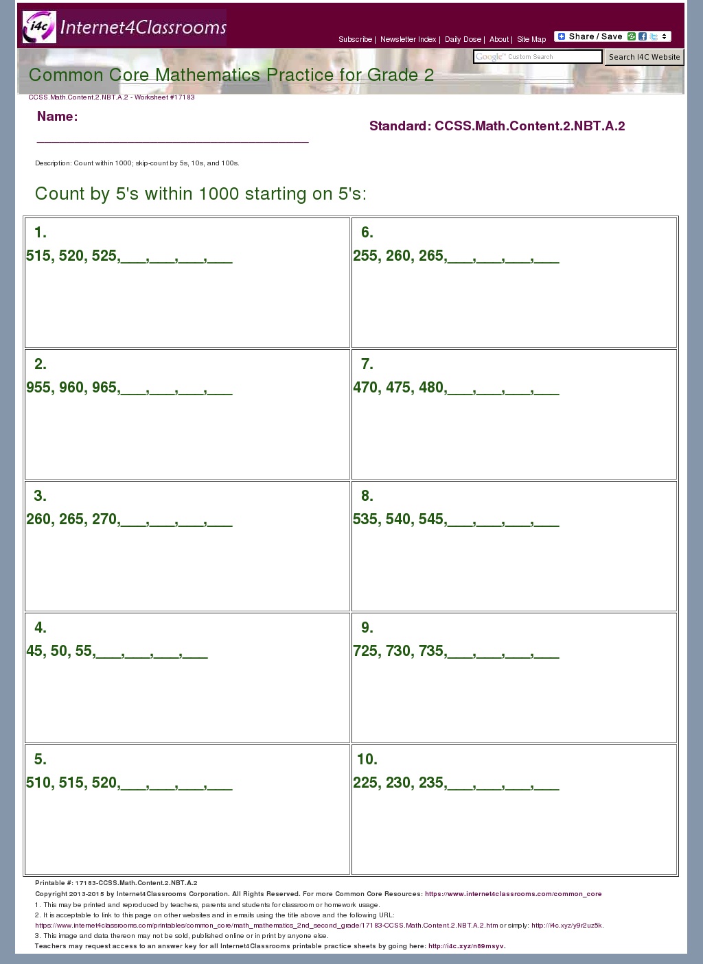 - It is also acceptable to link to this page on other websites and in emails using the title above and the following URL: http://internet4classrooms.com/printables/common_core/math_mathematics_2nd_second_grade/description_download_17183-CCSS.Math.Content.2.NBT.A.2.htm or simply: http://i4c.xyz/y9cqcdgn.
