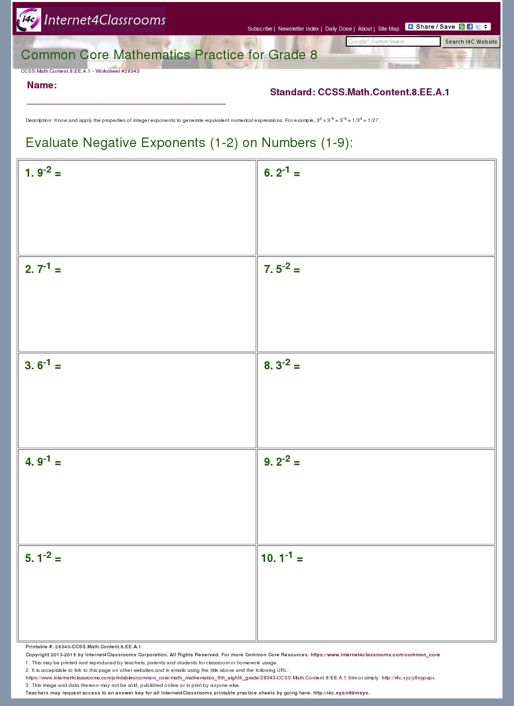 - It is also acceptable to link to this page on other websites and in emails using the title above and the following URL: http://internet4classrooms.com/printables/common_core/math_mathematics_8th_eighth_grade/description_download_28343-CCSS.Math.Content.8.EE.A.1.htm or simply: http://i4c.xyz/ybdu9l8j.