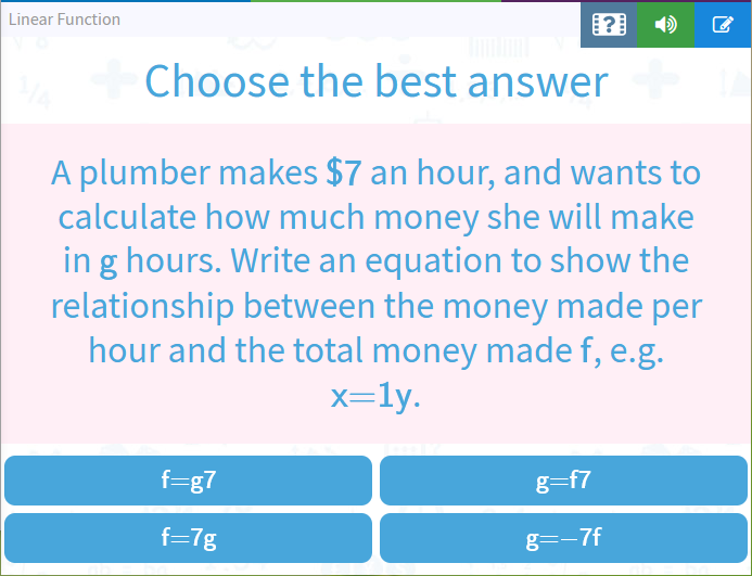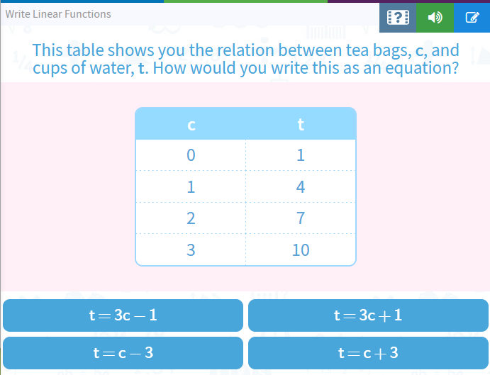 Investigate linear functions by trying to guess the slope and intercept from inputs and outputs.  SEE MORE