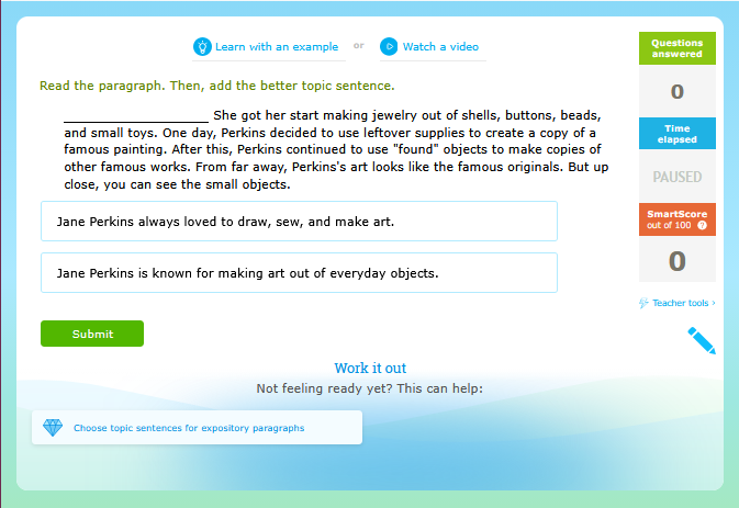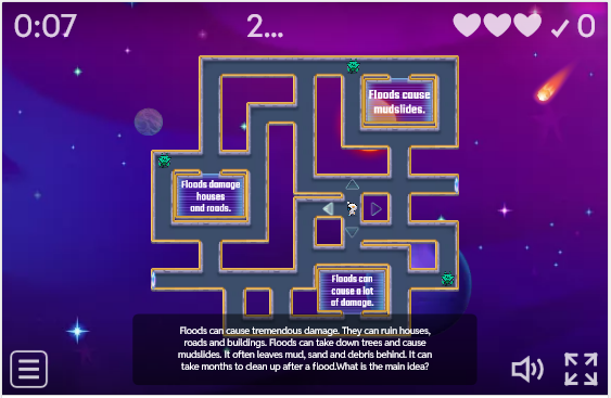 Each story has a main idea to it, yet one of the sentences does not belong. Read carefully do determine which sentence does not fit with the story. If you have trouble, use one of your three hint buttons to help you narrow down what the correct answer might be. SEE MORE