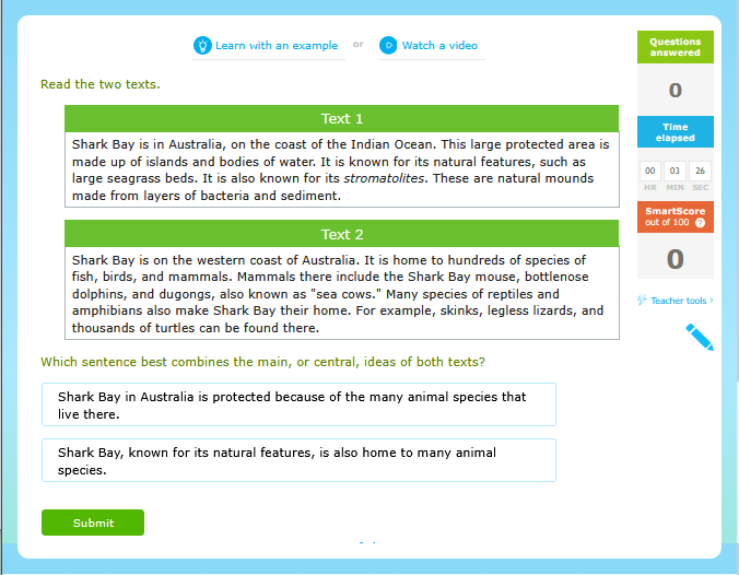 Read two texts and determine which sentence best combines the main, or central, ideas of both texts? SEE MORE